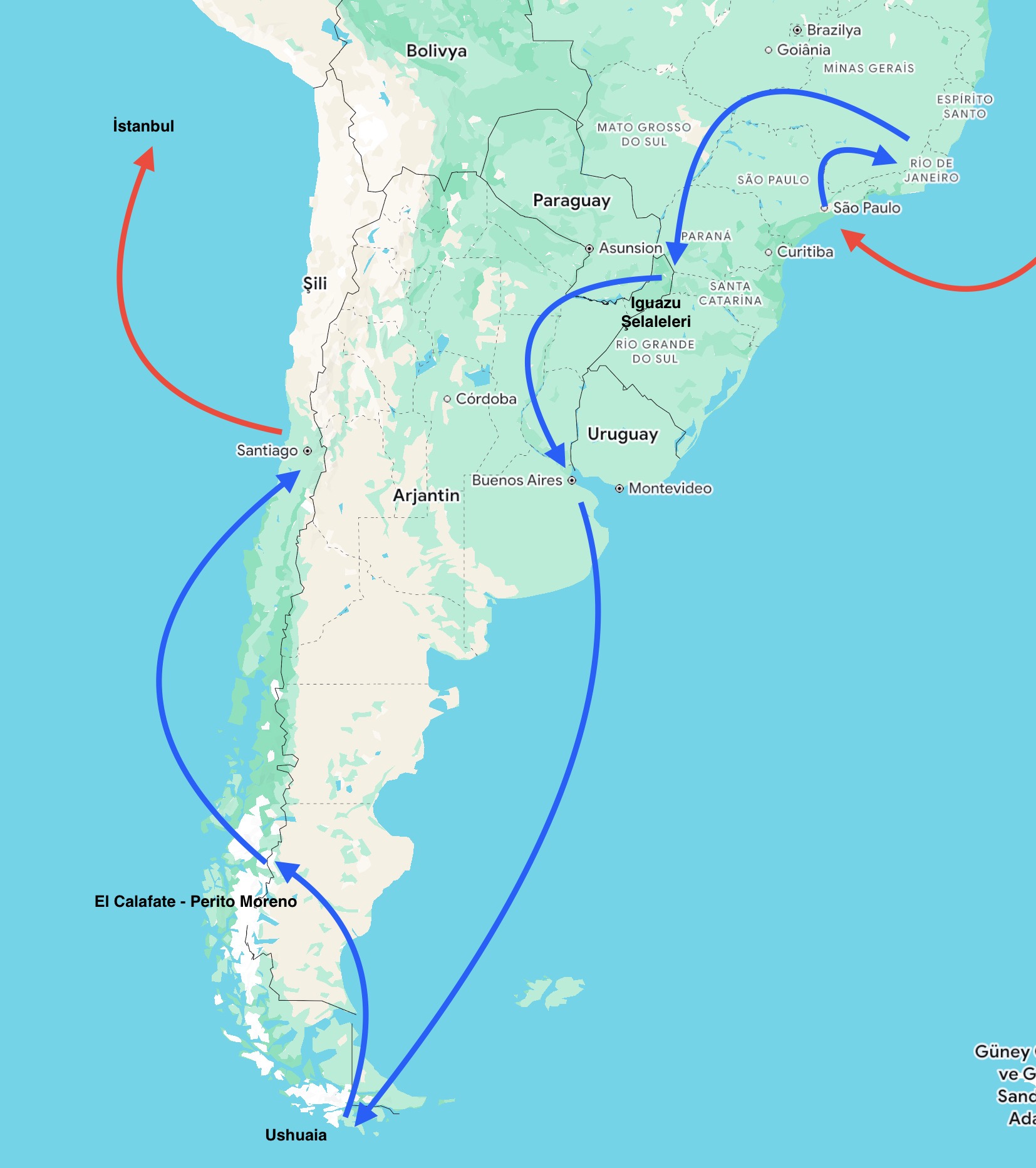 Güney Amerika’nın üç rengi (Patagonya edition), Brezilya-Arjantin-Şili